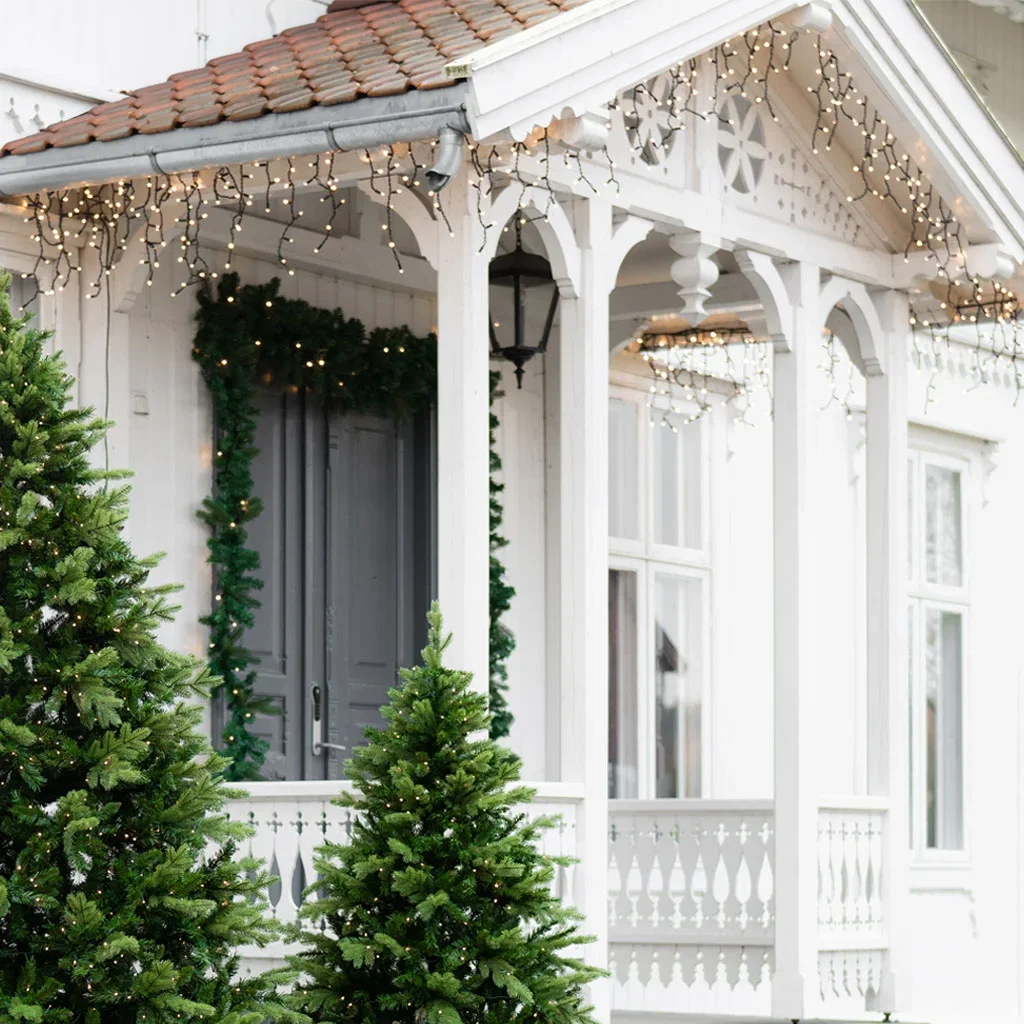 • Lys upp entrén genom att också linda in belysning i kransen