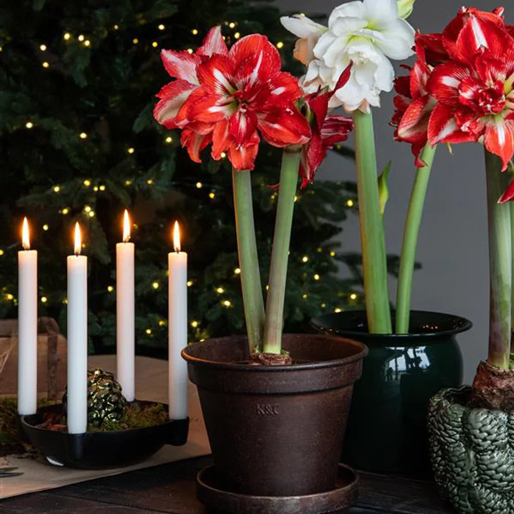 – Hyacinter och amaryllis kan klippas av och placeras i glasvaser, perfekt till nyårsbordet! Julrosor i små krukor ger ett delikat uttryck både inne och i entrén om temperaturen tillåter, säger Hans Jensen.
