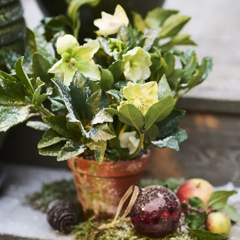 Välkomna gästerna med en vacker entré! Vintergröna växter, julrosor och skimmia ger entrén ett varmt och inbjudande intryck som håller hela säsongen. Barrväxter i olika former och storlekar passar perfekt i krukor och skapar en vintrig känsla. Julrosor med sina vackra blommor och skimmia med röda eller vita bär är båda mycket dekorativa växter som tål några minusgrader och klarar sig fint hela vintern.