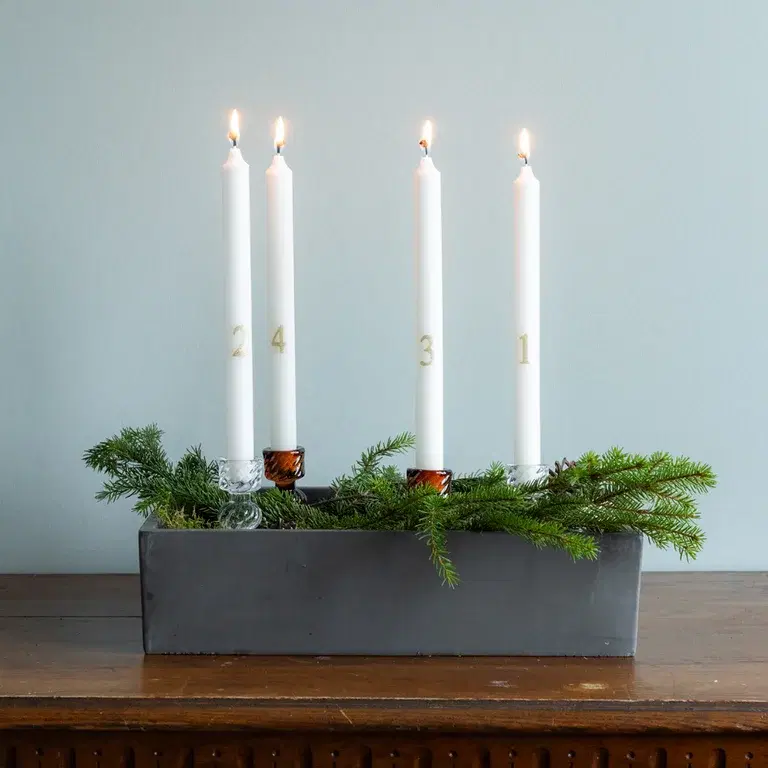 Adventstiden är en magisk nedräkning till jul. Adventsljusstakar finns i olika design – från klassiska 7-armade ljusstakar till mer moderna varianter i minimalistisk stil. Du hittar garanterat något som passar din smak. Eller varför inte skapa ett dekorativt ljusfat med numrerade stearinljus/blockljus och granris?