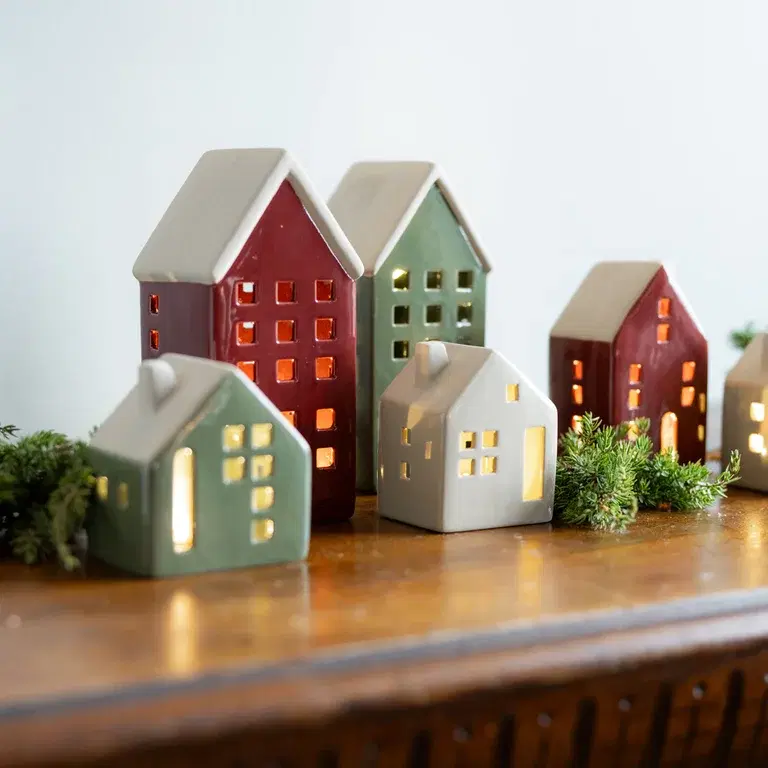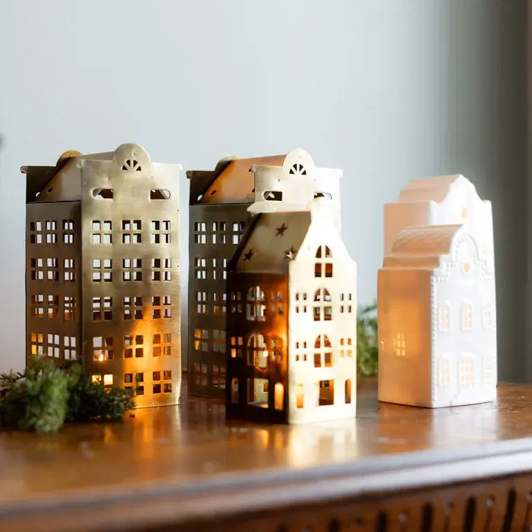 Dröm dig bort och skapa små byar av ljus med våra dekorativa ljushus. Sätt ihop dem eller använd dem var för sig för att skapa små, magiska inslag som ger rummet en unik atmosfär. Finns i olika storlekar och material – i porslin och metall, för användning med antingen värmeljus eller integrerad LED-ljuskälla.