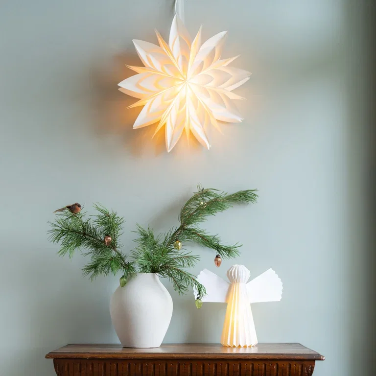 Tips! Du kan få ljus i din papperstjärna genom att köpa extra sladd och lampa, antingen med vanlig kontakt eller en batteridriven ljusstjärna speciellt anpassad för adventsstjärnor. Vi har båda delarna!