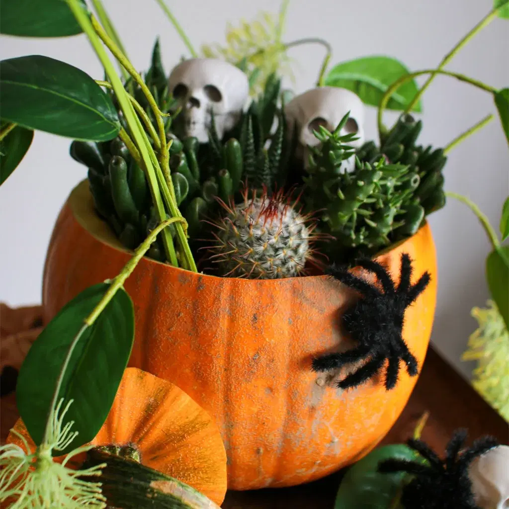 - Dödskalletema: Placera små dödskallar runt pumpan eller måla dödskallemönster på den.