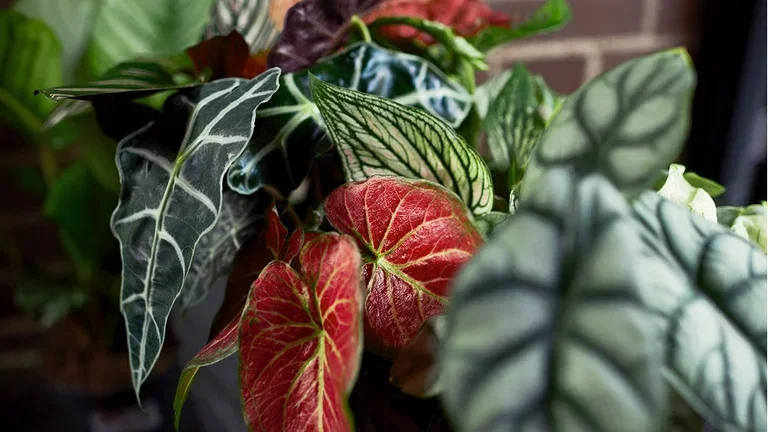I växtfamiljen alocasia hittar vi många spännande mönster och även former på bladen, till exempel zebrablad, amazonblad, marmorblad och radiatorört.