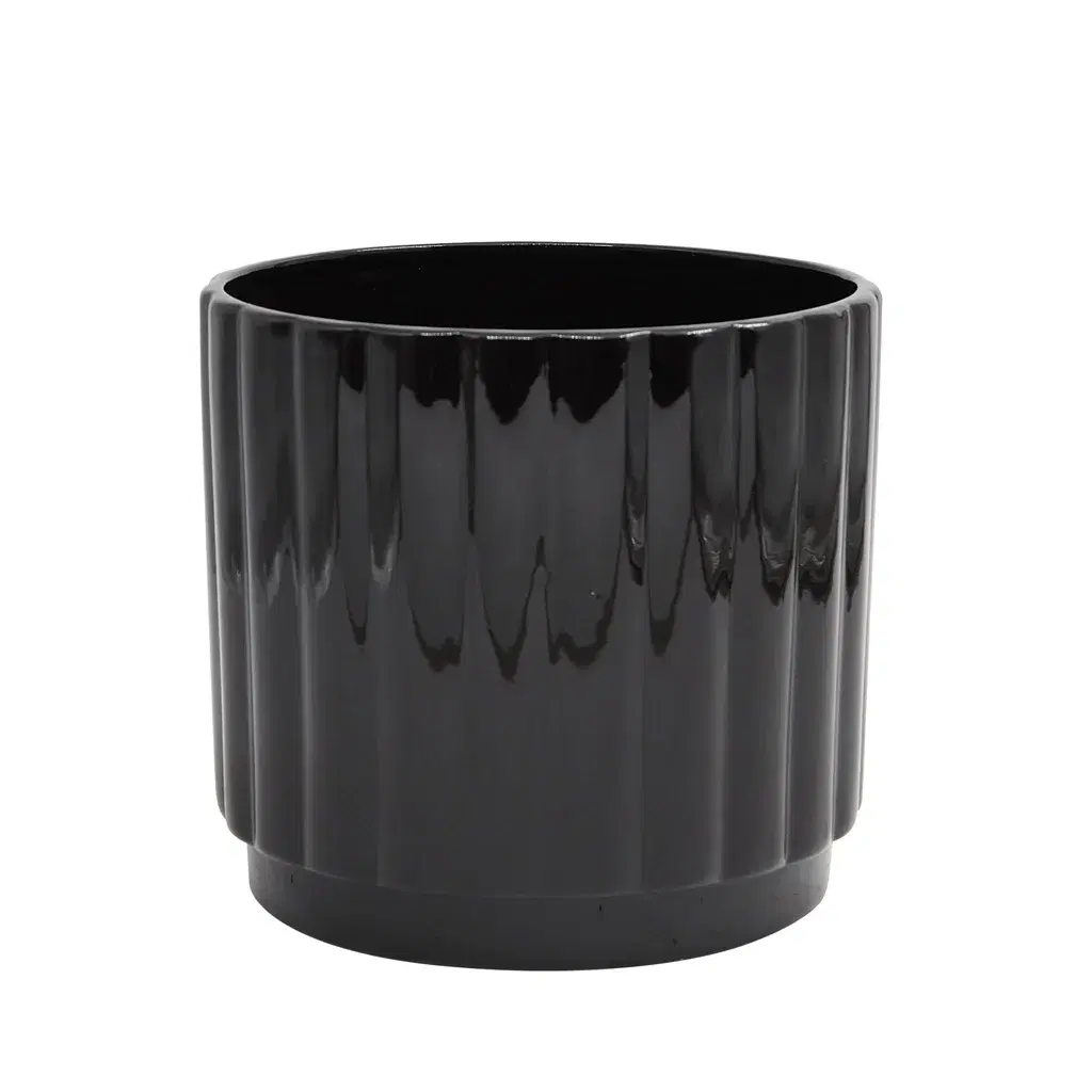 Kruktips: Stilrena keramikkrukan Harmonic i svart. Den smälter fint in i hörnan tillsammans med de andra krukorna, men kontrasterar samtidigt med sin stramare stil. Finns i flera storlekar och färger.
