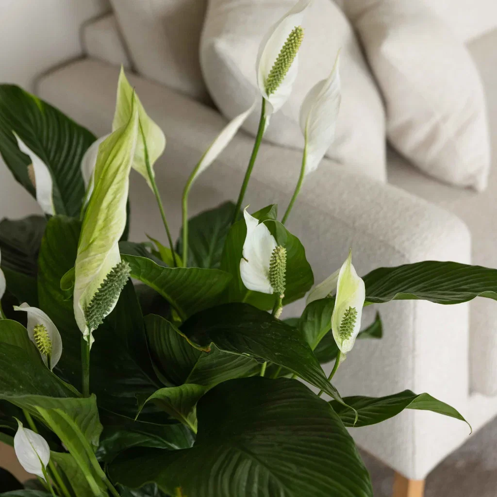 Elegant och lättskött växt med mörkgröna blad och snövita blommor på höga stänglar.