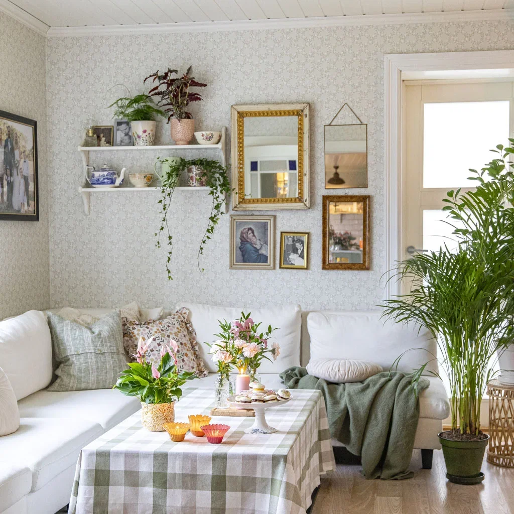 Det romantiska hemmet är en plats man vill stanna i – en liten värld där varje vrå berättar sin egen historia. Fyll vaserna, mixa mönstren och låt växterna växa fritt. Ju mer du vågar blanda, desto mer speglar hemmet vem du är – och det är just det som gör stilen oemotståndlig.
