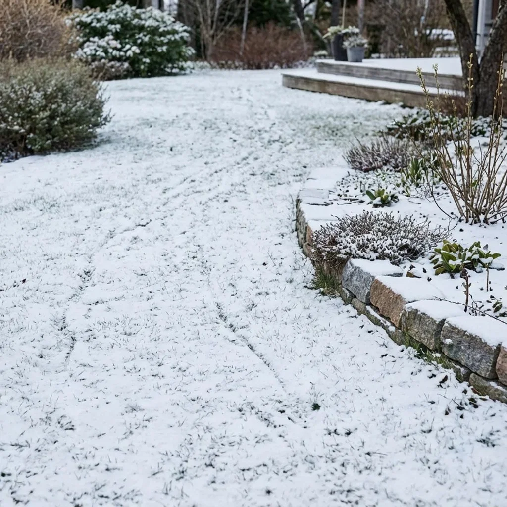 • Undvik att gå på gräsmattan när den är täckt av snö och is.