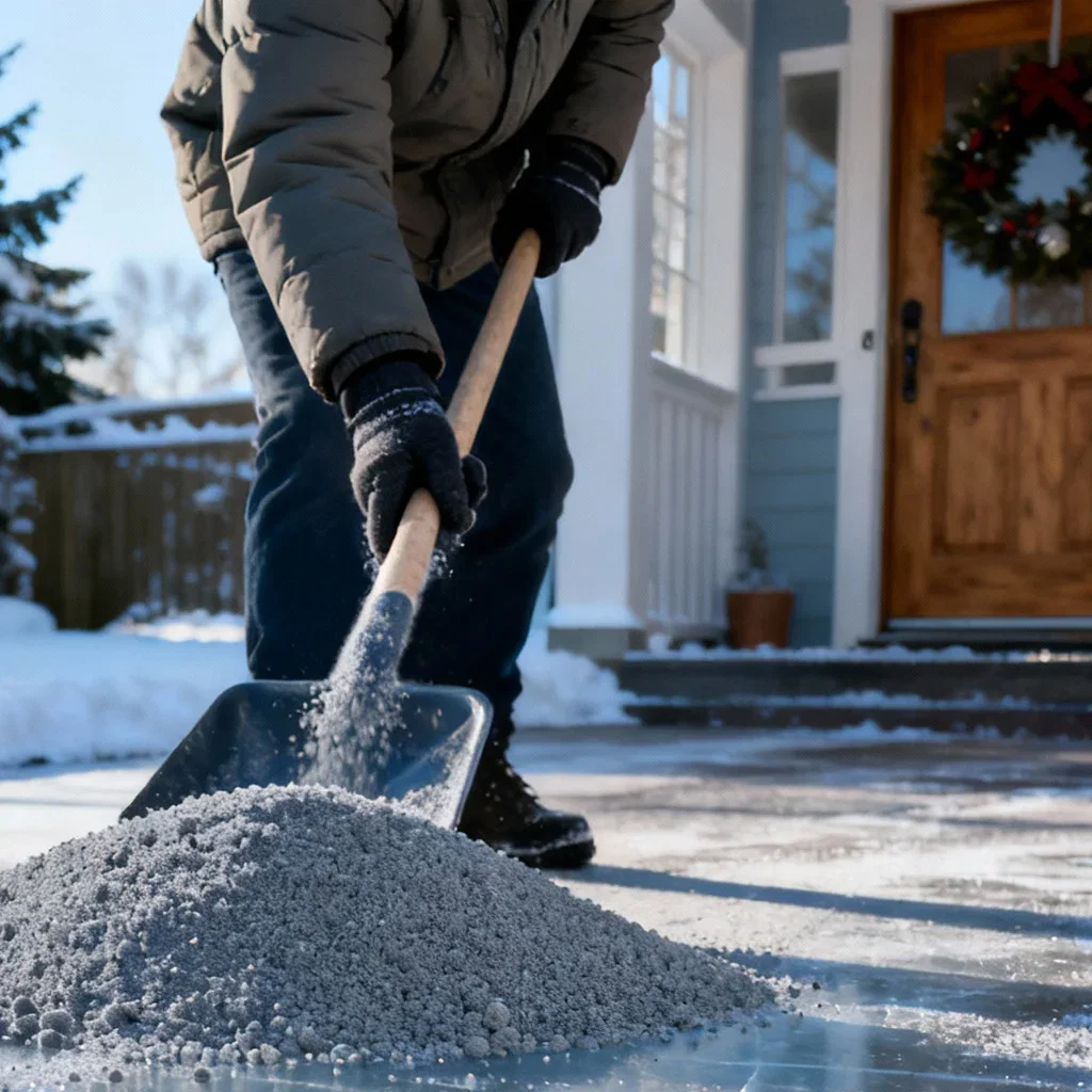Efter skottning är det smart att strö med sand eller salt där folk går mest. Sand ger bra fäste, medan salt smälter is – använd gärna en kombination. Tänk särskilt på trappor, entréer och andra ställen där det är lätt att halka. Grussand med småsten ger extra bra grepp på is.