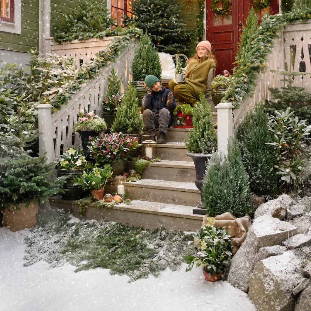 Granris kan också användas som strömedel – det ger grepp på halt underlag, samtidigt som det ser naturligt och snyggt ut vid entrén.