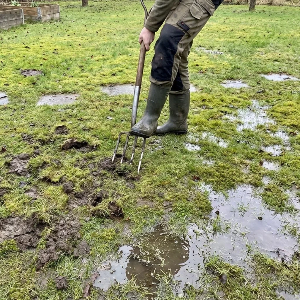 - Lufta gräsmattan, så att den dräneras bättre.