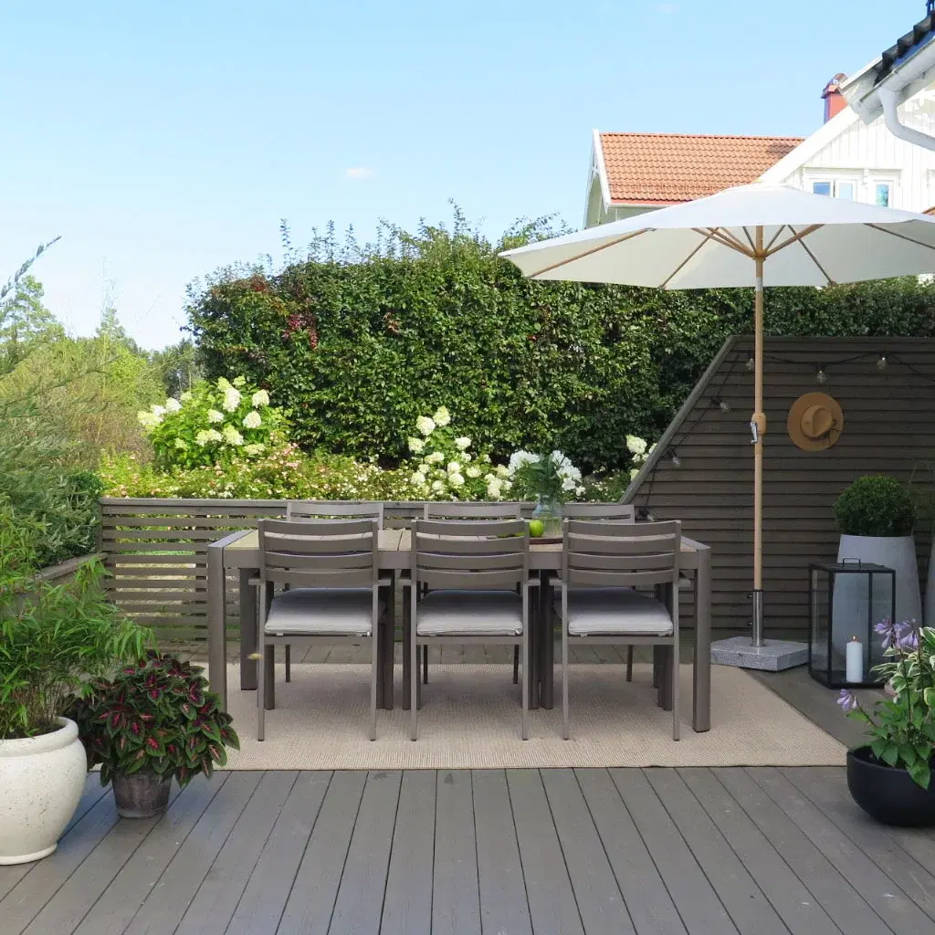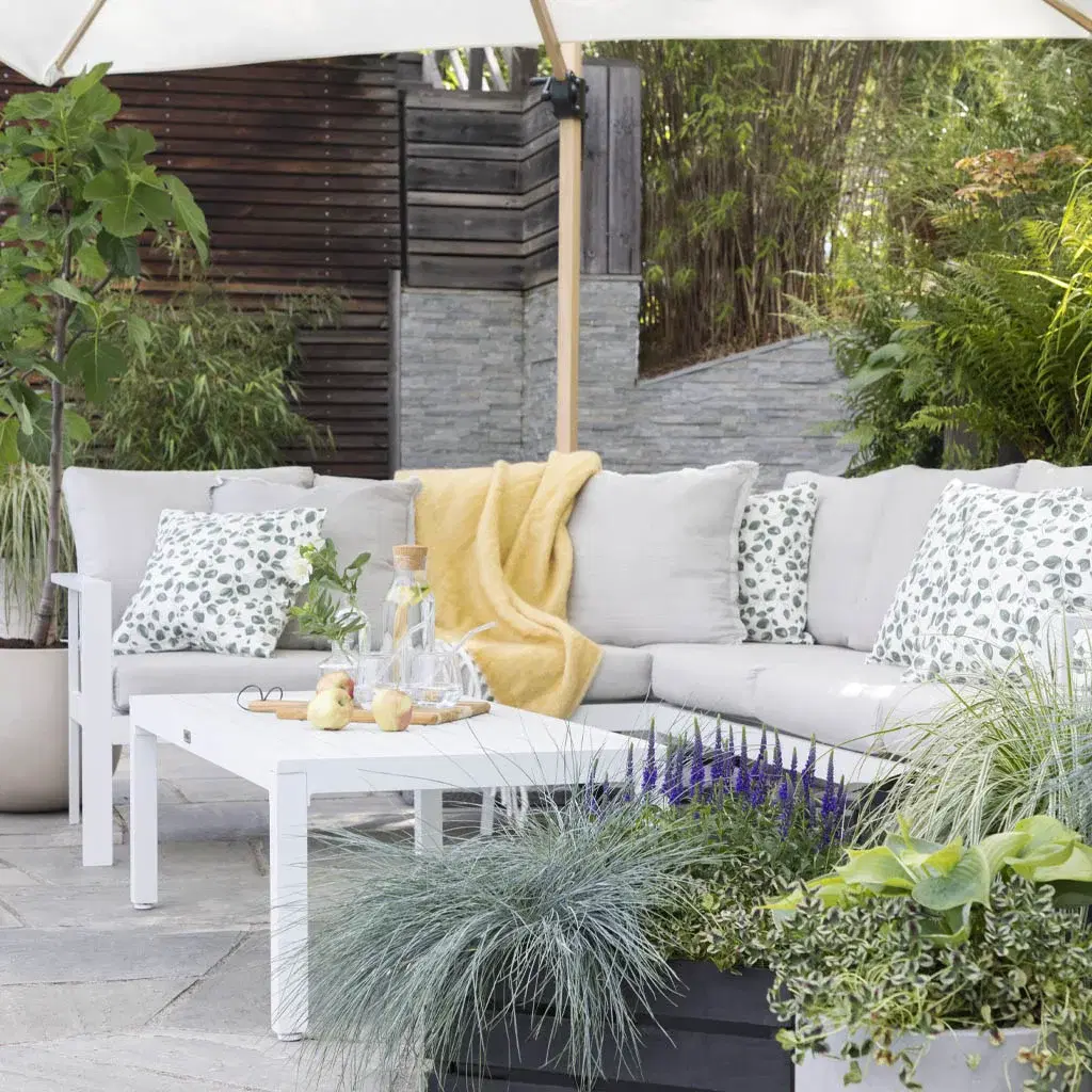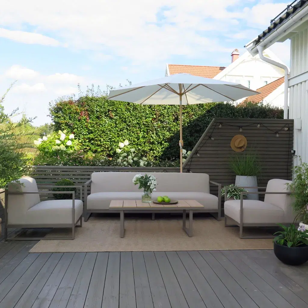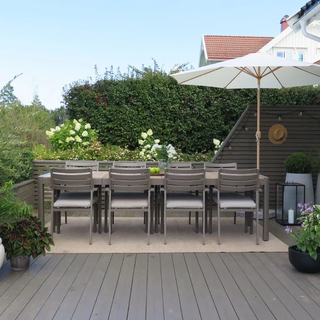 När trädgårdsmöblerna är valda är det dags att sätta pricken över i:et. Du kan inreda ute på samma sätt som du inreder inomhus. Växter, kuddar och plädar, mattor, lyktor och ljus kan lyfta uteplatsen till nya höjder. Om du frågar oss är växterna särskilt viktiga. Växter skapar ro och harmoni i uterummet, och textilier gör det mjukare och mer ombonat. Detaljerna gör att du njuter ännu mer av de värdefulla utomhusdagarna, helt enkelt.