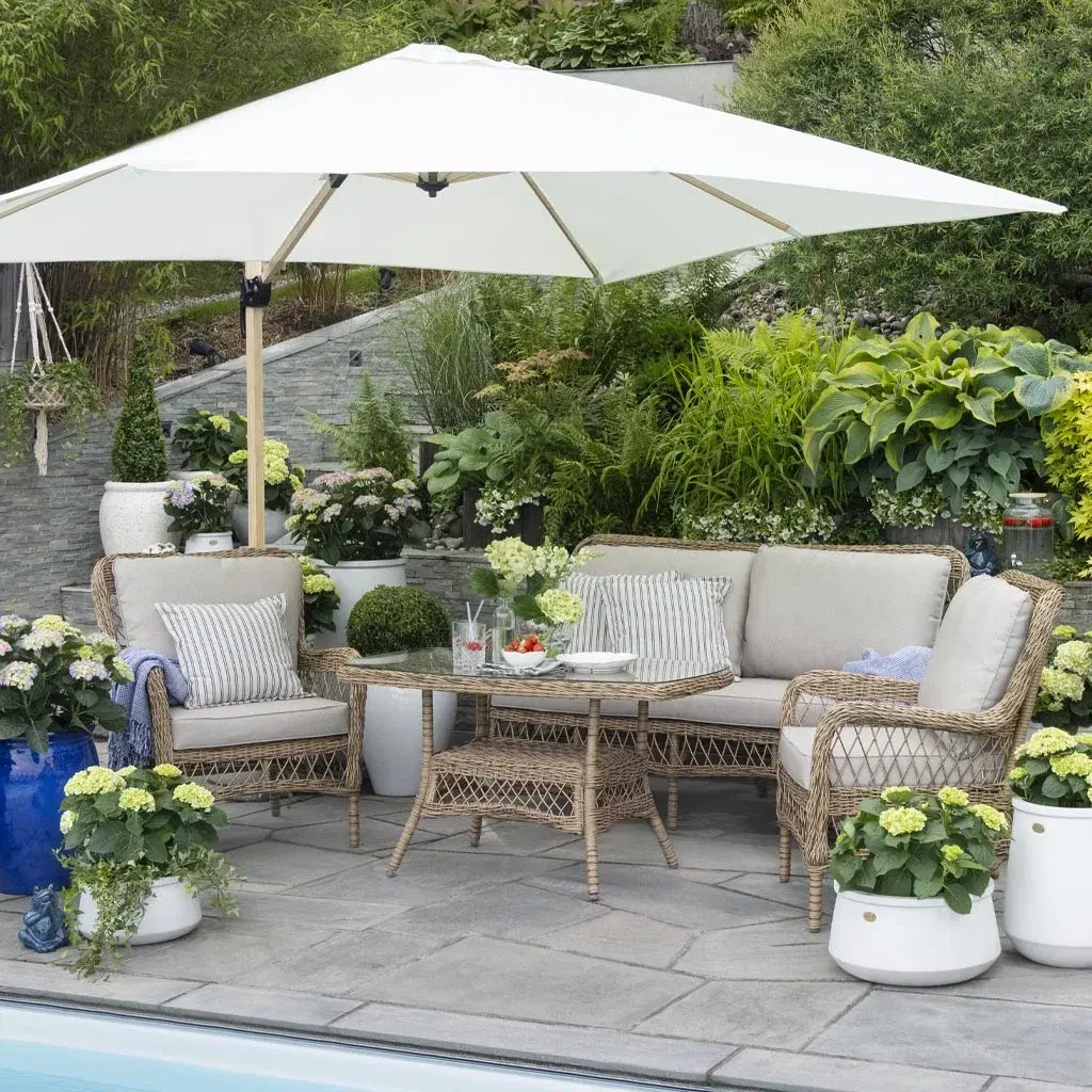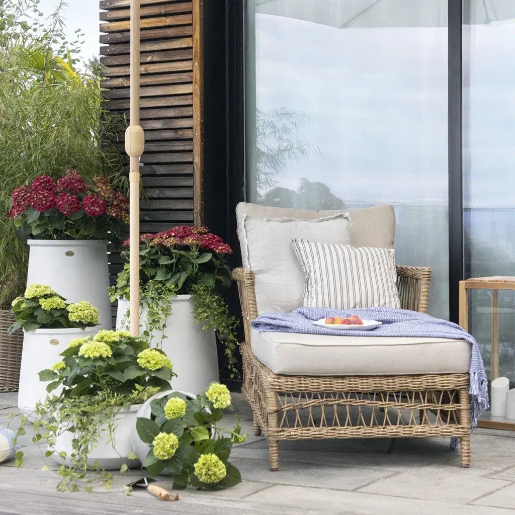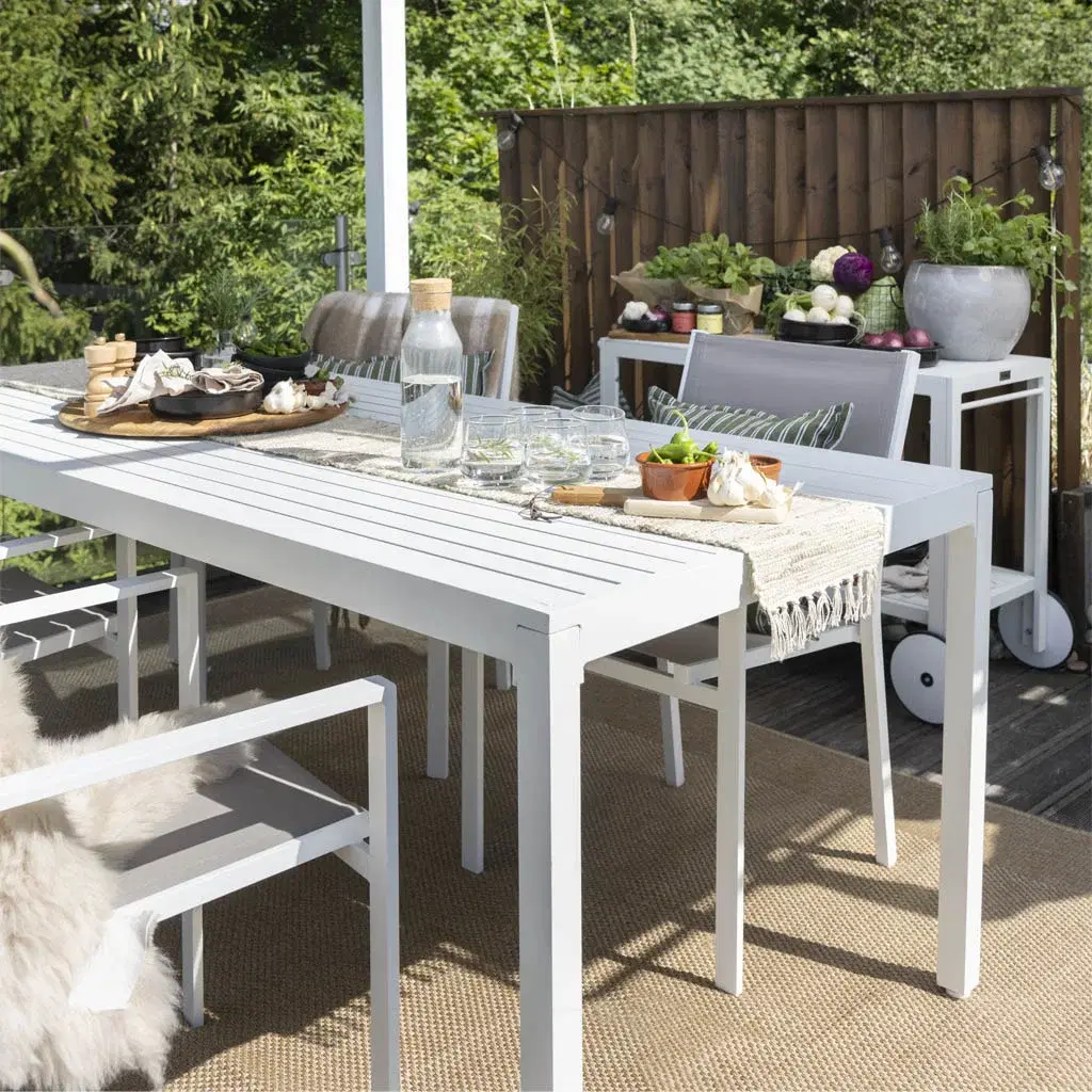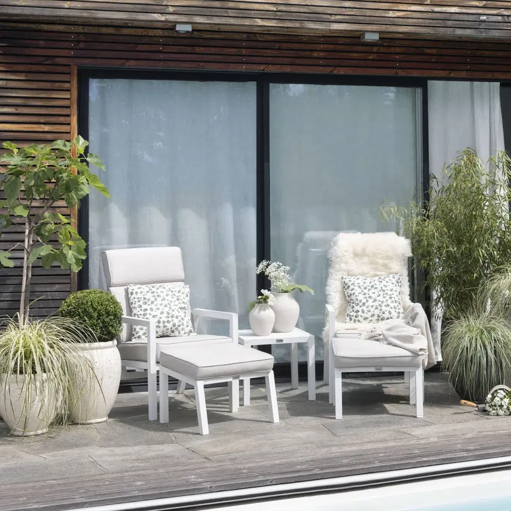 När trädgårdsmöblerna är valda är det dags att sätta pricken över i:et. Du kan inreda ute på samma sätt som du inreder inomhus. Växter, kuddar och plädar, mattor, lyktor och ljus kan lyfta uteplatsen till nya höjder. Om du frågar oss är växterna särskilt viktiga. Växter skapar ro och harmoni i uterummet, och textilier gör det mjukare och mer ombonat. Detaljerna gör att du njuter ännu mer av de värdefulla utomhusdagarna, helt enkelt.