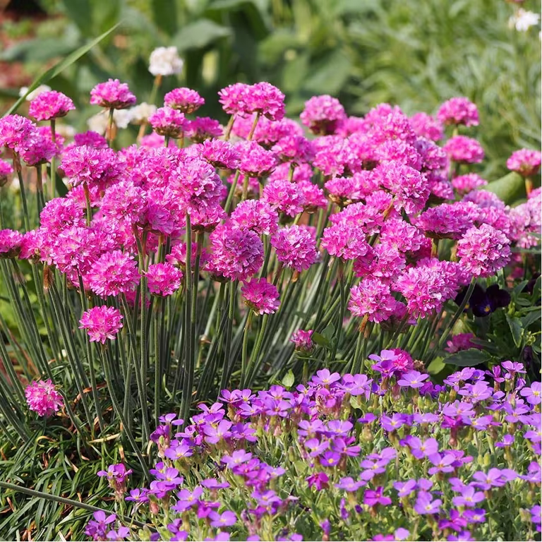 - Trift – har små täta blomklasar i rosa, lila eller vitt. Passar särskilt bra på havsnära tomter då den tål salta vindar, vacker i både rabatt och stenparti.