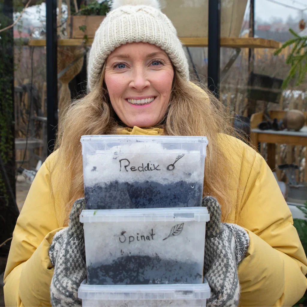 Se vad Tanja har fått fram med sitt geniala knep: vintersådd i godislådor, en metod som ger dig starka plantor som du slipper avhärda!