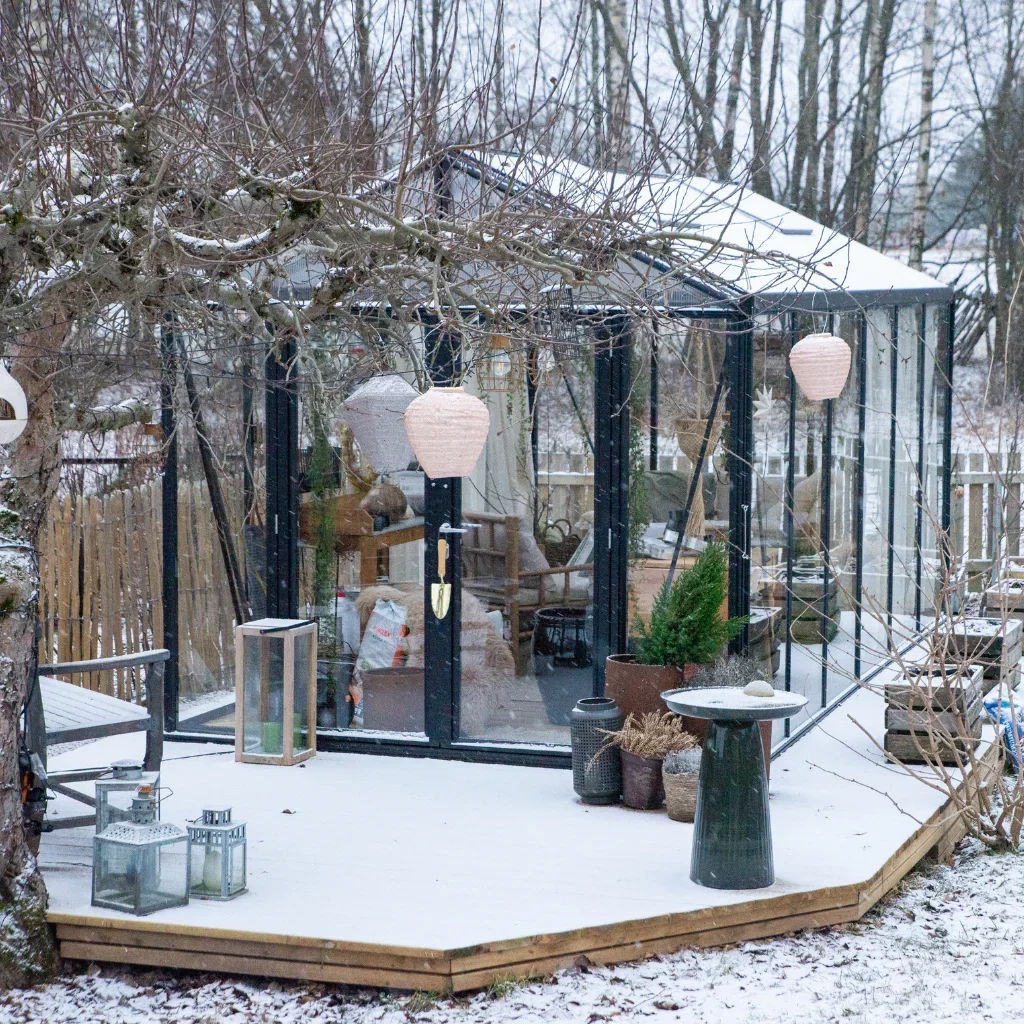 Vem säger att växthuset bara är till för odling? Tanja visar att du kan skapa en mysig oas mitt i vinterkylan. Tänd ett ljus, ta med ett fårskinn och hitta lugnet. Så förlänger du trädgårdssäsongen och får en fristad när frosten biter!