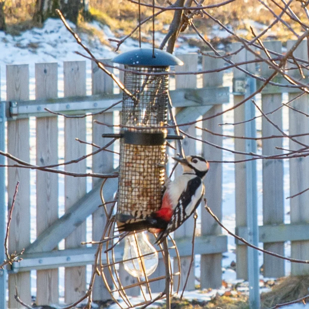 När vintern är som kallast skapar du enkelt liv och rörelse i trädgården! Vilken glädje det är att följa fågellivet, särskilt när en vacker hackspett kommer på besök. Ge fåglarna varierad mat, så får du se artrikedomen på nära håll!