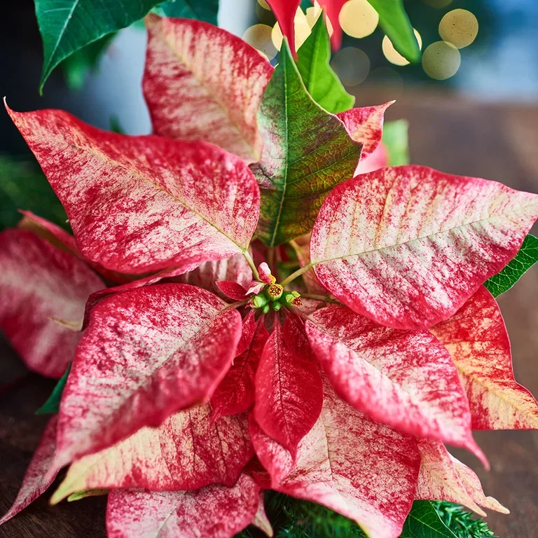 Visste du att de färgstarka bladen, som vi så ofta sammankopplar med växten, egentligen är högbladiga? Själva blomman på är de små, gula knopparna i mitten.